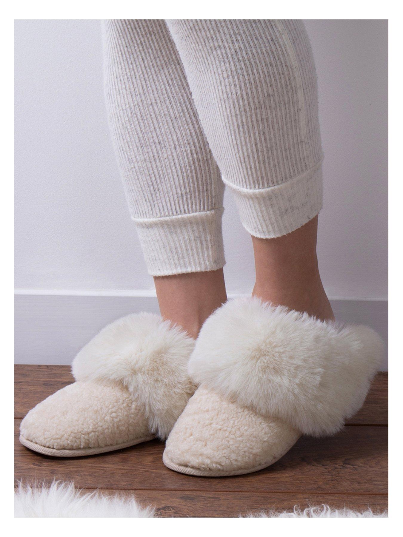 Product Name: Cream faux fur cross over mule slippers on sale