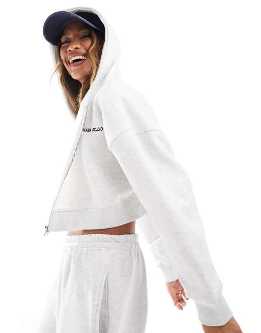 Product Name: Light grey cropped hoodie on sale