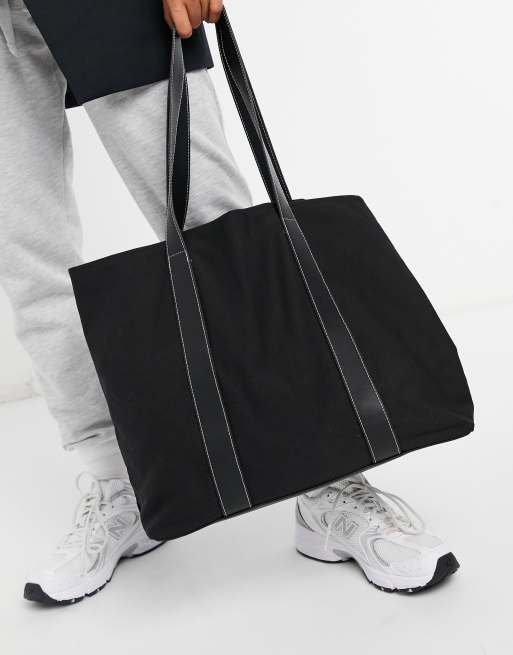 Product Name: Black canvas tote with leather straps on sale